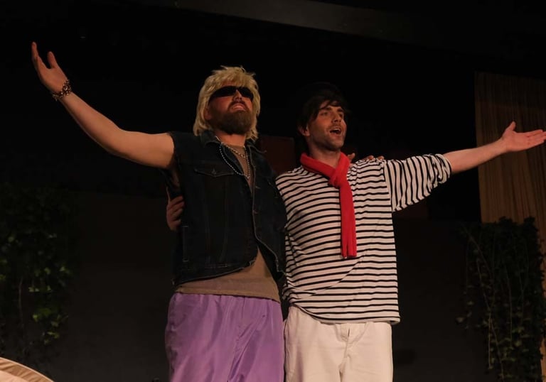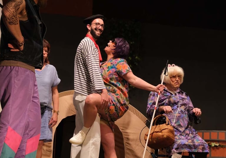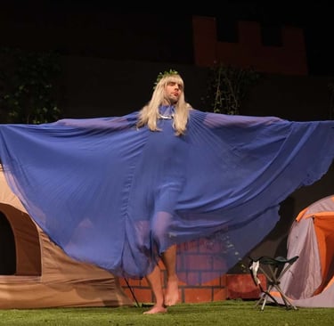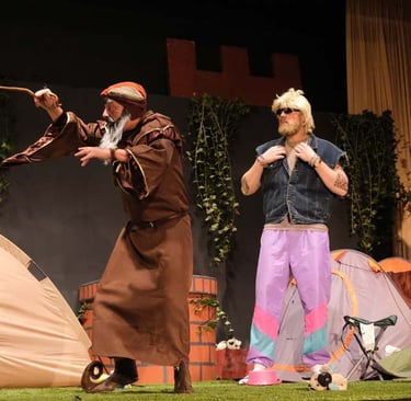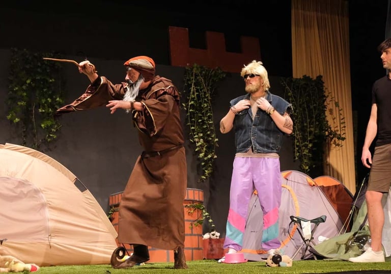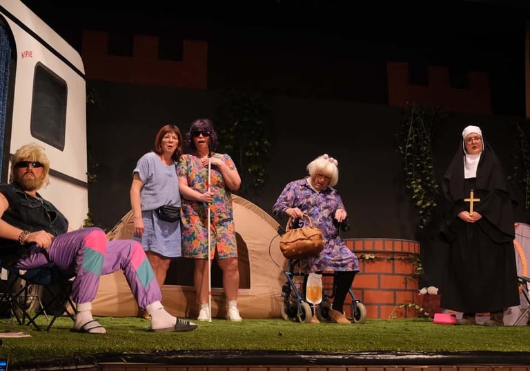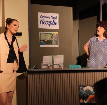 Grote complimenten voor onze vaste decorbouwers Gerben Lenstra en Marten Miske. Laatst genoemde vierde maar liefst zijn 42 jarig toneeljubileum op de zaterdagavond. Op de camping verschenen enkele bijzondere gasten. Zo kwam de vrije vogelaar Frederik Vogel (Marten Miske) kamperen en ook de domme boerenzusters Grada (Janny Reiffers) en de blinde Gretha (Miranda Blaauwwiekel) zetten hun tentje op. Beide zuster hadden eigenlijk een coke-deal op de camping, die uiteraard volledig mislukte, waardoor de dealer (Jordan Timmermans), die als ijscoman en als de artistieke Francois opkwam, er als een haas vandoor ging. Ook kwam de gemene directiesecretaresse Frederique (Boukje Miske) een weekend op de camping met haar zus, zuster Aurelia (Tijn Caspers), die voor verpleegster van eigenaar Oma Kwak (Gerad Werkman) werd aangezien, met alle gevolgen van dien.
